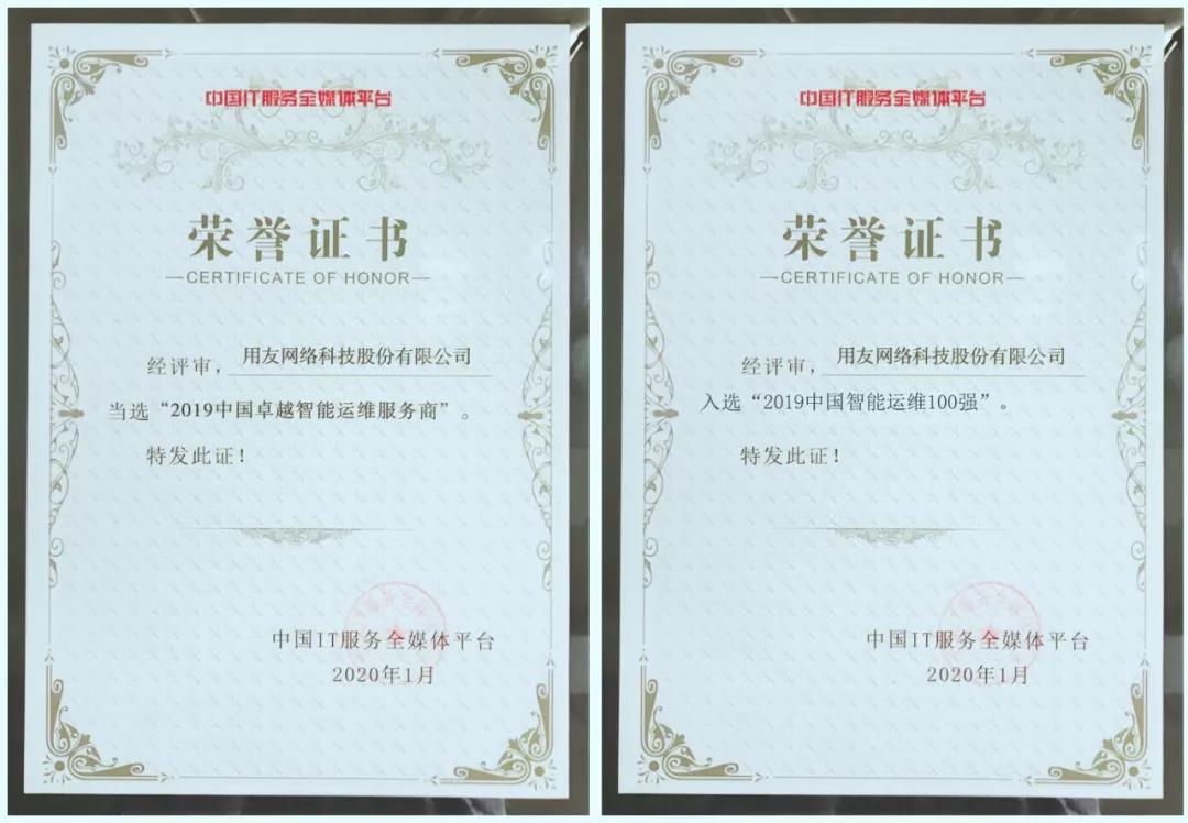 【榮譽(yù)】用友喜獲 2019中國IT服務(wù)領(lǐng)軍企業(yè)和智能運(yùn)維服務(wù)商兩項大獎